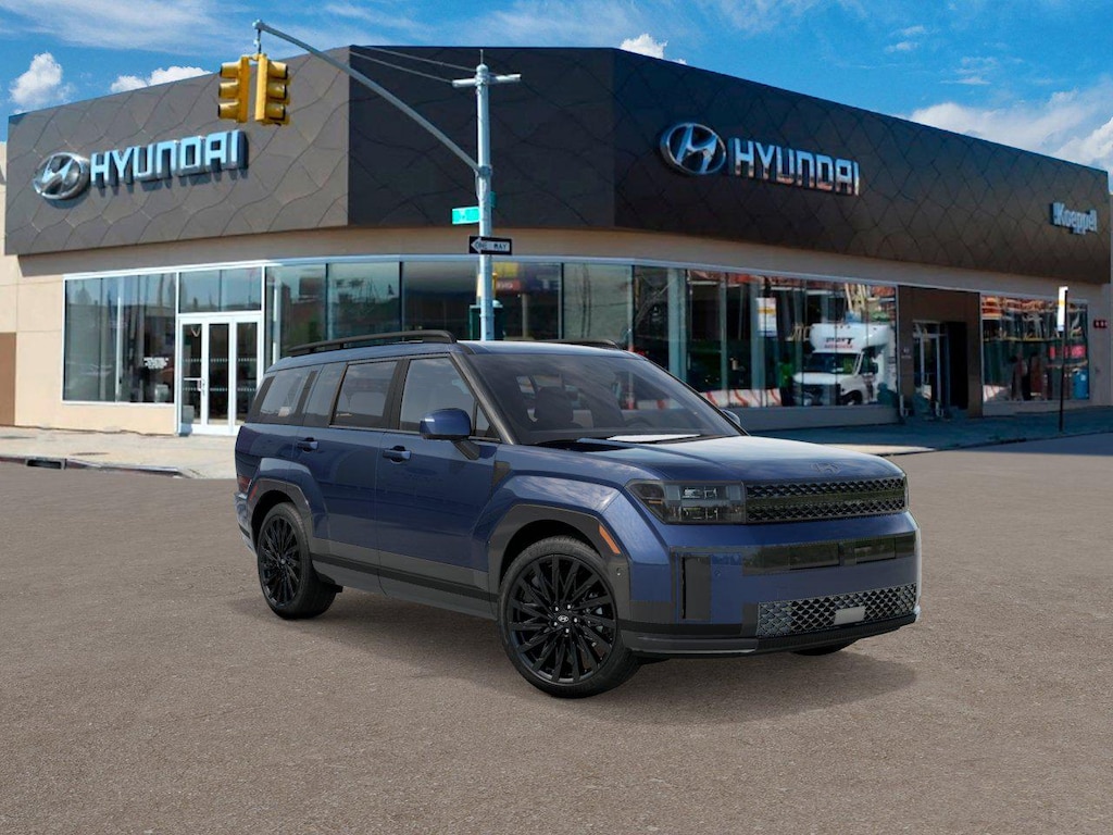Atlantis Blue 2026 Hyundai Santa Fe Calligraphy AWD 8-Speed Automatic with SHIFTRONIC 2.5L I4 AWD, Black Leather.
